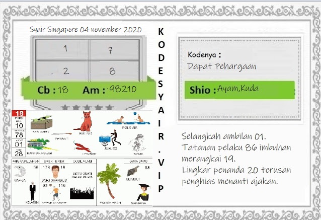 Tetap pergunakan naluri diri sendiri untuk membaca serta mengerti makna asal Syair Sgp 4 November 2020. Para Pemain Judi Online sebaiknya jangan terlalu terburu – buru dalam membaca makna yang berasal dari prediksi syair sgp kami. Pahamilah secara pelan serta pilih salah satu diantara syair yang paling banyak dicari oleh para pecinta togel online. Meskipun syair togel yang kami berikan ini sangat banyak serta beraneka ragam, tetapi pada dasarnya ada beberapa syair yang sangat banyak dicari seperti syair kampleng, syair pandawa, syair mbah semar, serta syair naga mas.