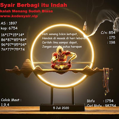 Tetap pergunakan naluri diri sendiri untuk membaca serta mengerti makna asal Syair Sgp 5 Juli 2020. Para Pemain Judi Online sebaiknya jangan terlalu terburu – buru dalam membaca makna yang berasal dari prediksi syair sgp kami. Pahamilah secara pelan serta pilih salah satu diantara syair yang paling banyak dicari oleh para pecinta togel online. Meskipun syair togel yang kami berikan ini sangat banyak serta beraneka ragam, tetapi pada dasarnya ada beberapa syair yang sangat banyak dicari seperti syair kampleng, syair pandawa, syair mbah semar, serta syair naga mas.