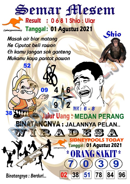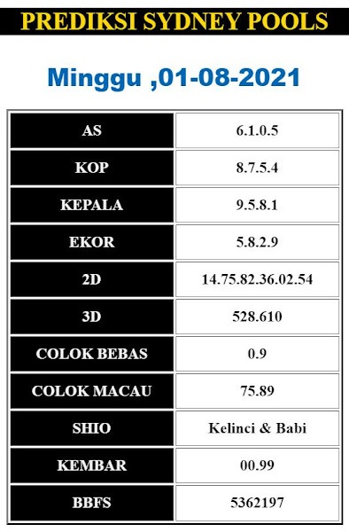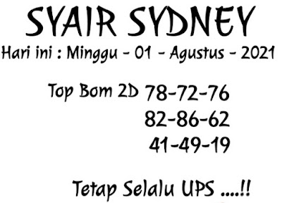 Oh ya, Selalu pergunakan naluri anda untuk membaca makna dari Prediksi Syair Sydney 01 Agustus 2021. Janganlah membaca Prediksi Syair Sydney Terjitu dengan terlalu menggebu – gebu dari makna syair yang telah kami berikan. Pahamilah dengan pelan hingga mengerti maksud dari syair yang paling banyak dicari oleh pemain judi togel online ini. Setelah kalian memahami prediksi Syair Sydney ini Kemenangan dengan lebih mudah bisa kalian raih.