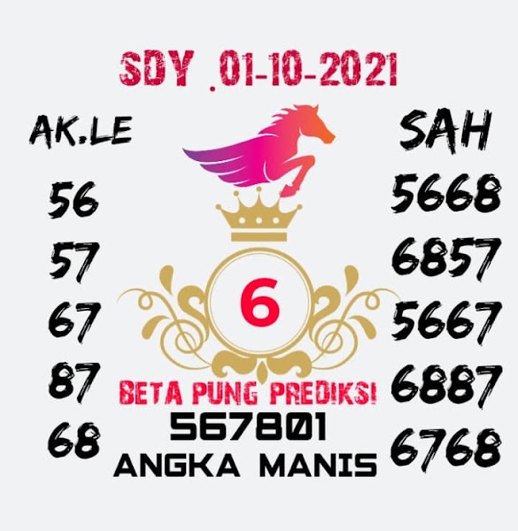 Berikut adalah prediksi sdy hari ini, prediksi sdy akurat, syair sdy :Top BBFS : 819257