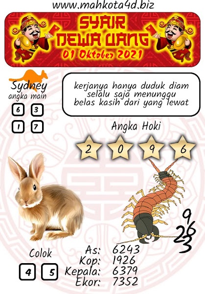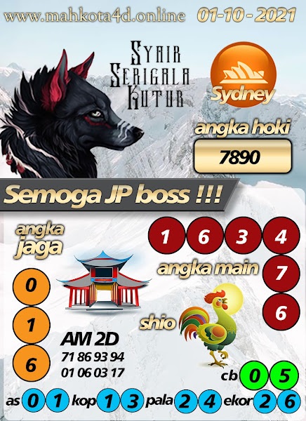 Oh ya, Selalu pergunakan naluri anda untuk membaca makna dari Prediksi Syair Sydney 01 Oktober 2021. Janganlah membaca Prediksi Syair Sydney Terjitu dengan terlalu menggebu – gebu dari makna syair yang telah kami berikan. Pahamilah dengan pelan hingga mengerti maksud dari syair yang paling banyak dicari oleh pemain judi togel online ini. Setelah kalian memahami prediksi Syair Sydney ini Kemenangan dengan lebih mudah bisa kalian raih.