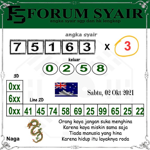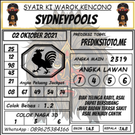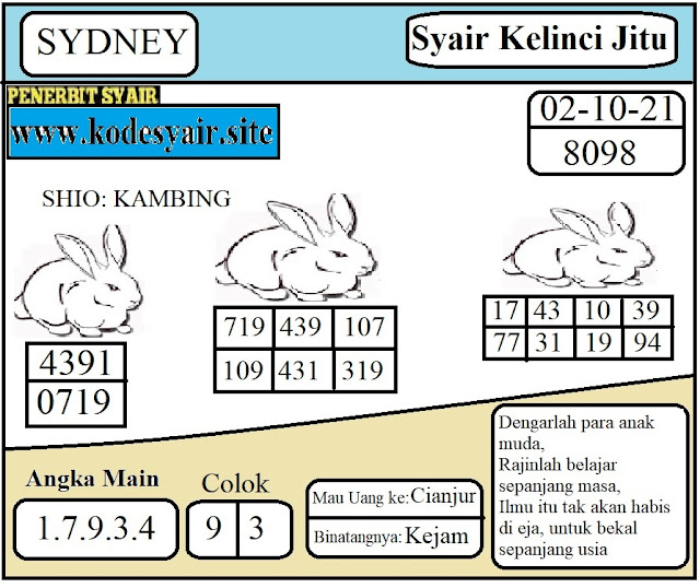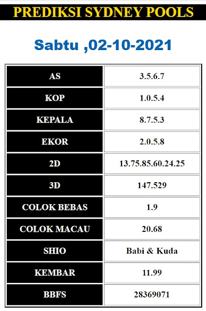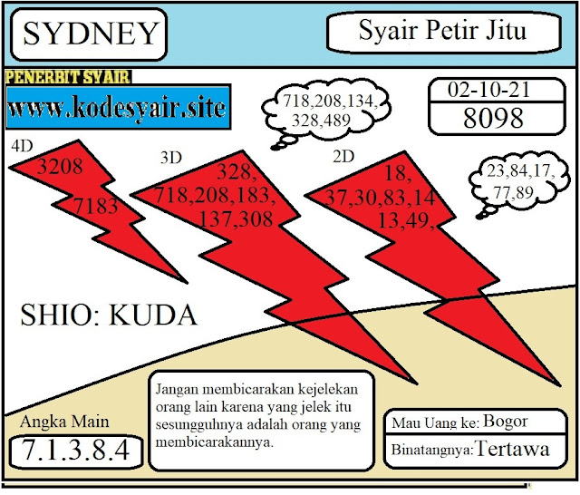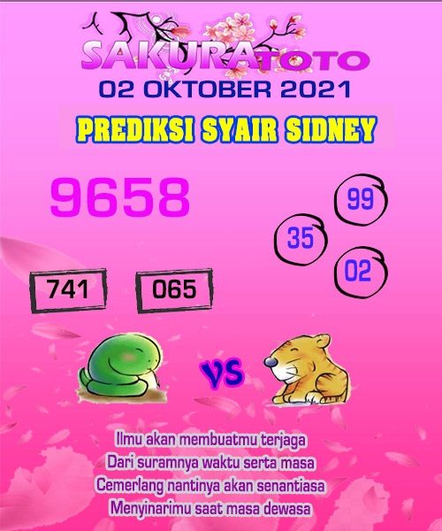 Oh ya, Selalu pergunakan naluri anda untuk membaca makna dari Prediksi Syair Sydney 02 Oktober 2021. Janganlah membaca Prediksi Syair Sydney Terjitu dengan terlalu menggebu – gebu dari makna syair yang telah kami berikan. Pahamilah dengan pelan hingga mengerti maksud dari syair yang paling banyak dicari oleh pemain judi togel online ini. Setelah kalian memahami prediksi Syair Sydney ini Kemenangan dengan lebih mudah bisa kalian raih.
