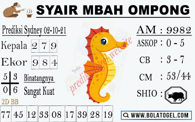 Jenis Permainan Togel Online ini sangat membutuhkan kesadaran dan kepekaan dalam membaca dan juga mamprediksi suatu angka togel. Terutama Syair 02 Oktober 2021, dalam forum syair sydney hari ini, kalian akan menemukan kode syair sydney hari ini, nah dalam prediksi togel sydney hari ini, kalian akan mendapatkan syair togel sydney terlengkap hanya di JON4D Sebagai Situs Judi Togel Online terbesar di Indoneisa. Dimana kami munculkan Syair Sydney terjitu agar memudahkan pemain dalam memahami angka keluaran di periode selanjutnya.