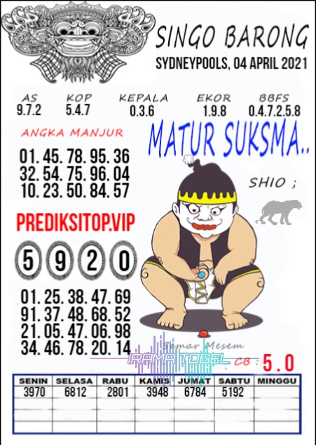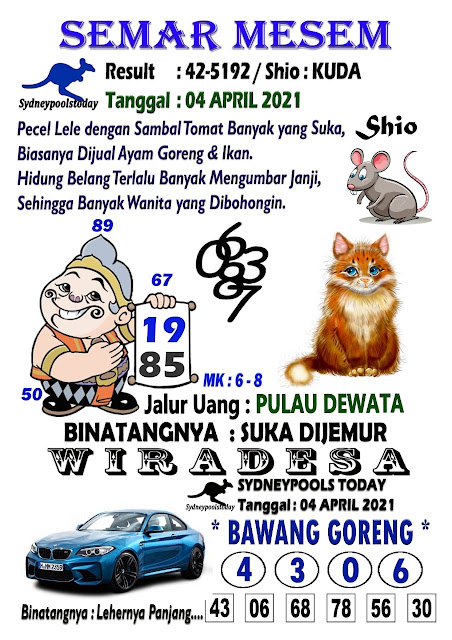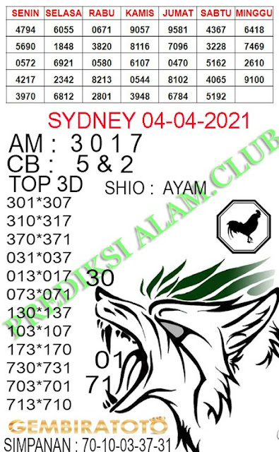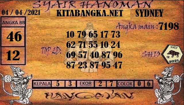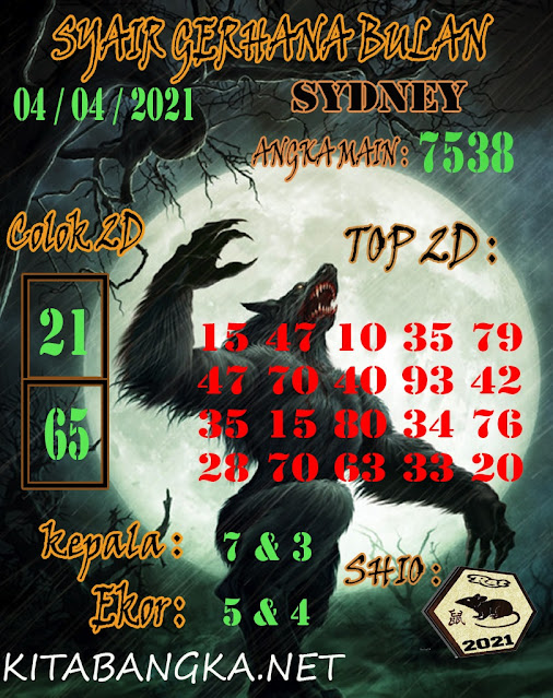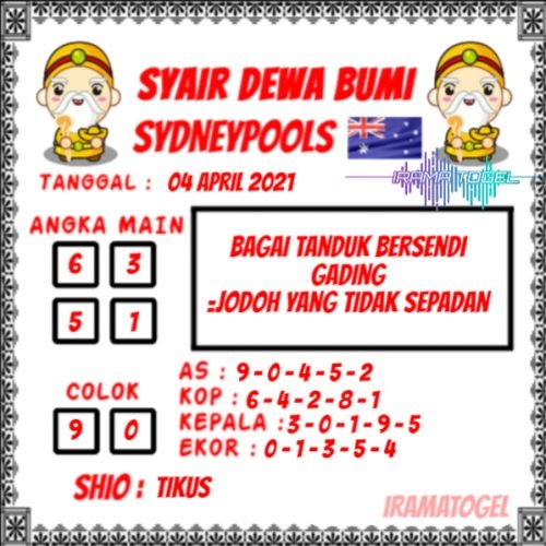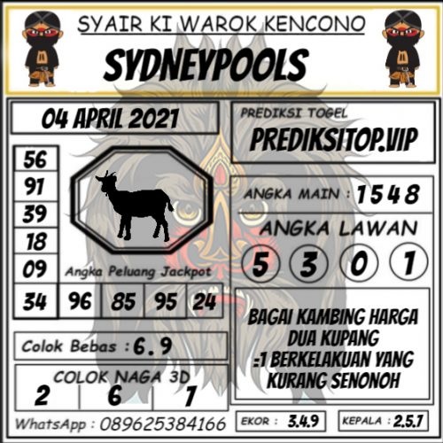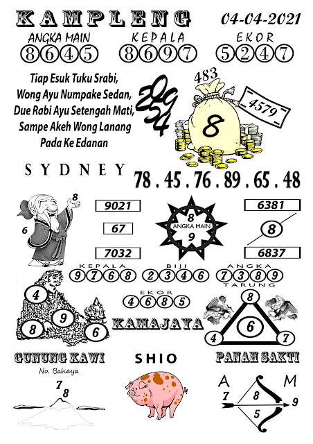 Oh ya, Selalu pergunakan naluri anda untuk membaca makna dari Prediksi Syair Sydney 04 April 2021. Janganlah membaca Prediksi Syair Sydney Terjitu dengan terlalu menggebu – gebu dari makna syair yang telah kami berikan. Pahamilah dengan pelan hingga mengerti maksud dari syair yang paling banyak dicari oleh pemain judi togel online ini. Setelah kalian memahami prediksi Syair Sydney ini Kemenangan dengan lebih mudah bisa kalian raih.