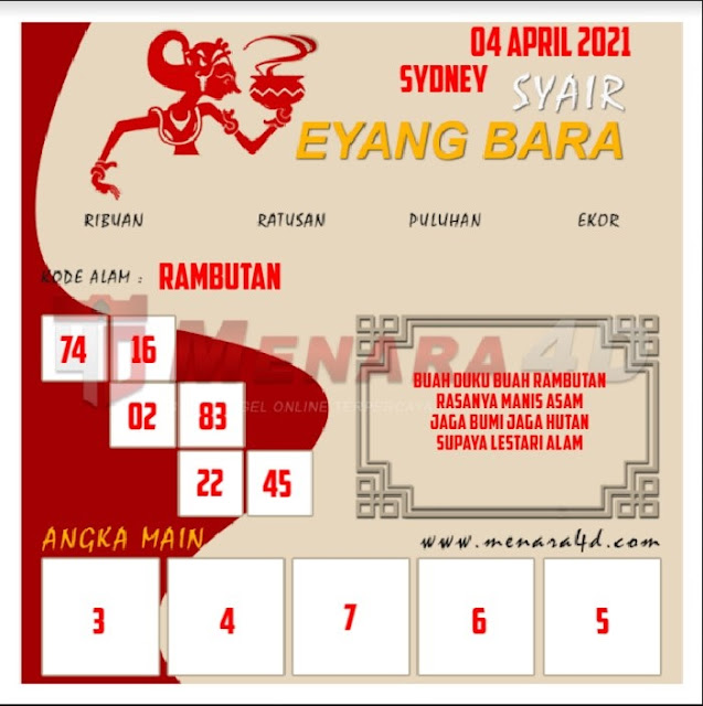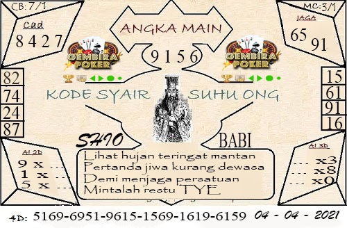 Jenis Permainan Togel Online ini sangat membutuhkan kesadaran dan kepekaan dalam membaca dan juga mamprediksi suatu angka togel. Terutama Syair 04 April 2021, dalam forum syair sydney hari ini, kalian akan menemukan kode syair sydney hari ini, nah dalam prediksi togel sydney hari ini, kalian akan mendapatkan syair togel sydney terlengkap hanya di JON4D Sebagai Situs Judi Togel Online terbesar di Indoneisa. Dimana kami munculkan Syair Sydney terjitu agar memudahkan pemain dalam memahami angka keluaran di periode selanjutnya.