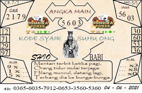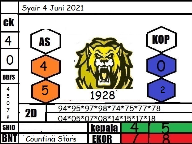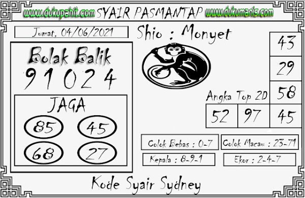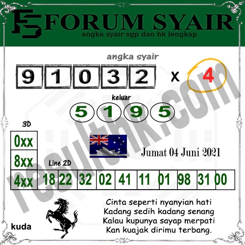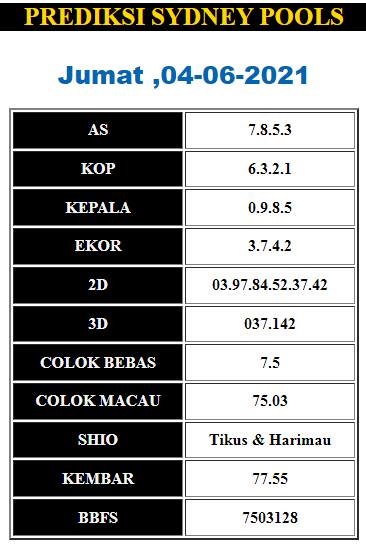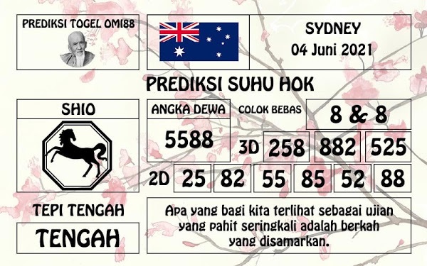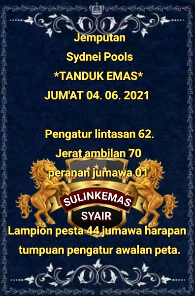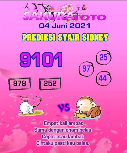 Jenis Permainan Togel Online ini sangat membutuhkan kesadaran dan kepekaan dalam membaca dan juga mamprediksi suatu angka togel. Terutama Syair 04 Juni 2021, dalam forum syair sydney hari ini, kalian akan menemukan kode syair sydney hari ini, nah dalam prediksi togel sydney hari ini, kalian akan mendapatkan syair togel sydney terlengkap hanya di JON4D Sebagai Situs Judi Togel Online terbesar di Indoneisa. Dimana kami munculkan Syair Sydney terjitu agar memudahkan pemain dalam memahami angka keluaran di periode selanjutnya.