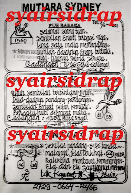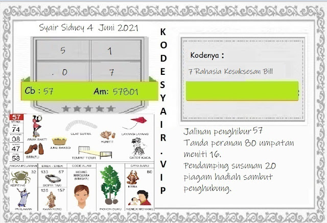Oh ya, Selalu pergunakan naluri anda untuk membaca makna dari Prediksi Syair Sydney 04 Juni 2021. Janganlah membaca Prediksi Syair Sydney Terjitu dengan terlalu menggebu – gebu dari makna syair yang telah kami berikan. Pahamilah dengan pelan hingga mengerti maksud dari syair yang paling banyak dicari oleh pemain judi togel online ini. Setelah kalian memahami prediksi Syair Sydney ini Kemenangan dengan lebih mudah bisa kalian raih.