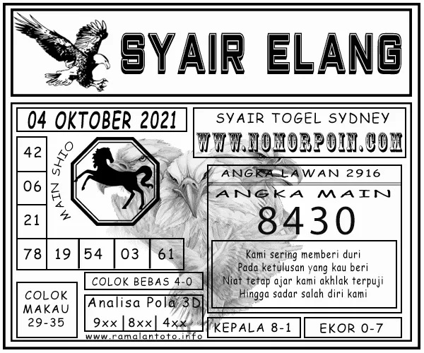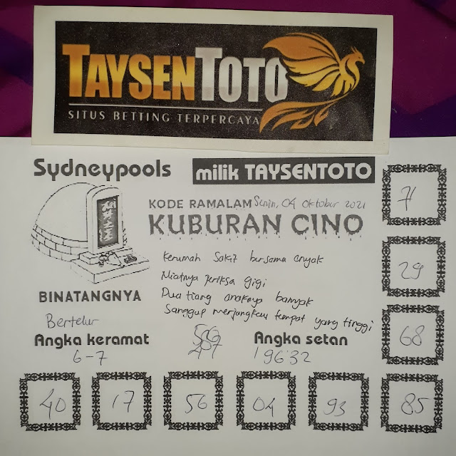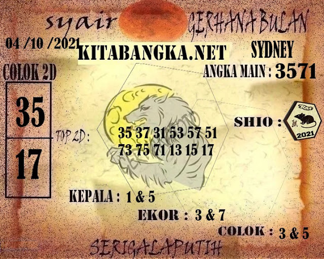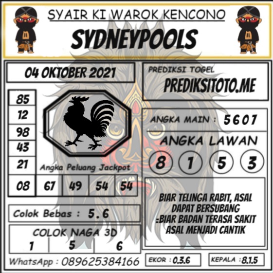 Oh ya, Selalu pergunakan naluri anda untuk membaca makna dari Prediksi Syair Sydney 04 Oktober 2021. Janganlah membaca Prediksi Syair Sydney Terjitu dengan terlalu menggebu – gebu dari makna syair yang telah kami berikan. Pahamilah dengan pelan hingga mengerti maksud dari syair yang paling banyak dicari oleh pemain judi togel online ini. Setelah kalian memahami prediksi Syair Sydney ini Kemenangan dengan lebih mudah bisa kalian raih.
