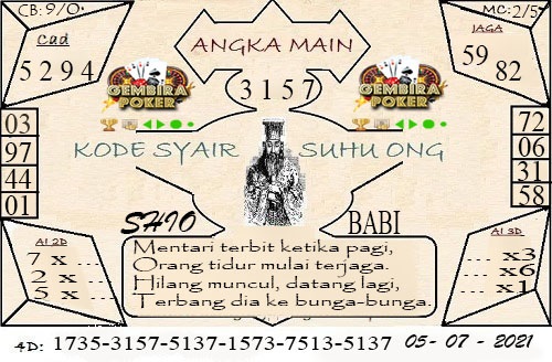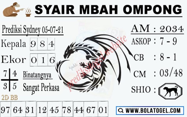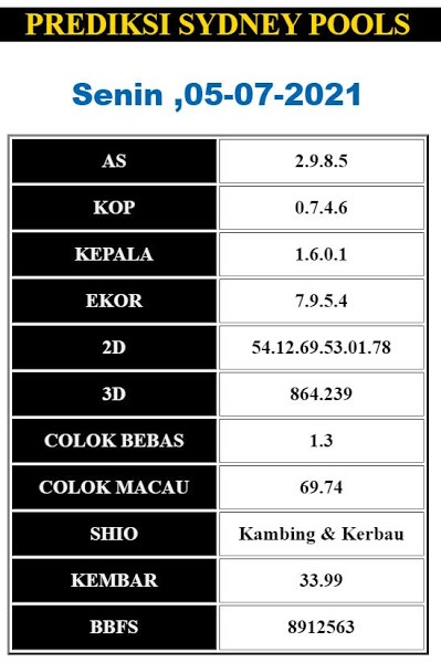 Jenis Permainan Togel Online ini sangat membutuhkan kesadaran dan kepekaan dalam membaca dan juga mamprediksi suatu angka togel. Terutama Syair 05 Juli 2021, dalam forum syair sydney hari ini, kalian akan menemukan kode syair sydney hari ini, nah dalam prediksi togel sydney hari ini, kalian akan mendapatkan syair togel sydney terlengkap hanya di JON4D Sebagai Situs Judi Togel Online terbesar di Indoneisa. Dimana kami munculkan Syair Sydney terjitu agar memudahkan pemain dalam memahami angka keluaran di periode selanjutnya.