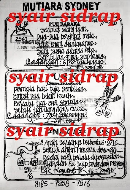 Oh ya, Selalu pergunakan naluri anda untuk membaca makna dari Prediksi Syair Sydney 05 Juli 2021. Janganlah membaca Prediksi Syair Sydney Terjitu dengan terlalu menggebu – gebu dari makna syair yang telah kami berikan. Pahamilah dengan pelan hingga mengerti maksud dari syair yang paling banyak dicari oleh pemain judi togel online ini. Setelah kalian memahami prediksi Syair Sydney ini Kemenangan dengan lebih mudah bisa kalian raih.