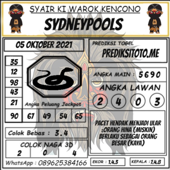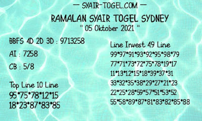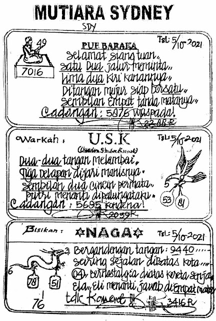 Oh ya, Selalu pergunakan naluri anda untuk membaca makna dari Prediksi Syair Sydney 05 Oktober 2021. Janganlah membaca Prediksi Syair Sydney Terjitu dengan terlalu menggebu – gebu dari makna syair yang telah kami berikan. Pahamilah dengan pelan hingga mengerti maksud dari syair yang paling banyak dicari oleh pemain judi togel online ini. Setelah kalian memahami prediksi Syair Sydney ini Kemenangan dengan lebih mudah bisa kalian raih.