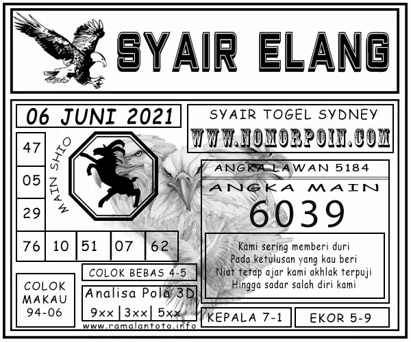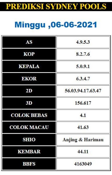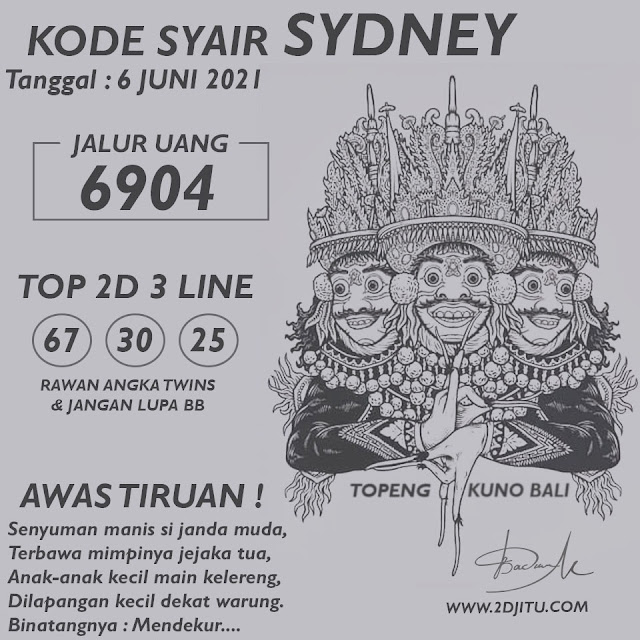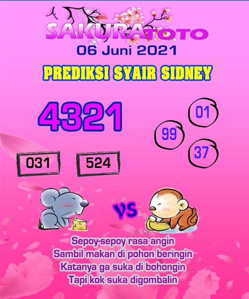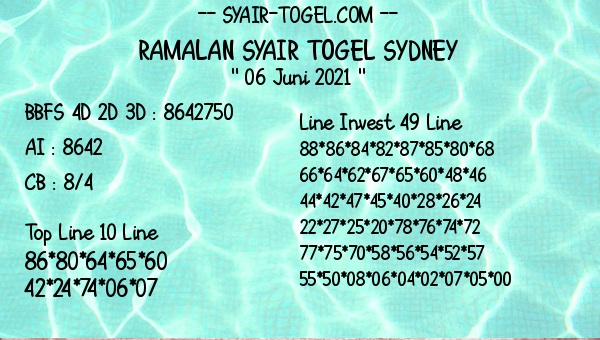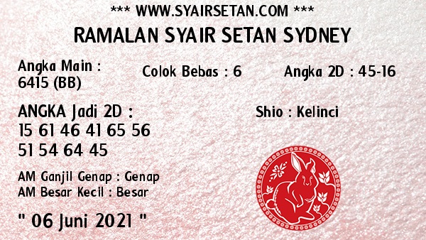 Jenis Permainan Togel Online ini sangat membutuhkan kesadaran dan kepekaan dalam membaca dan juga mamprediksi suatu angka togel. Terutama Syair 06 Juni 2021, dalam forum syair sydney hari ini, kalian akan menemukan kode syair sydney hari ini, nah dalam prediksi togel sydney hari ini, kalian akan mendapatkan syair togel sydney terlengkap hanya di JON4D Sebagai Situs Judi Togel Online terbesar di Indoneisa. Dimana kami munculkan Syair Sydney terjitu agar memudahkan pemain dalam memahami angka keluaran di periode selanjutnya.