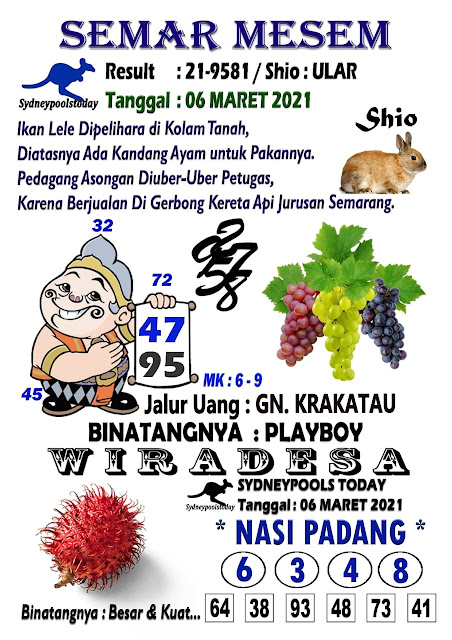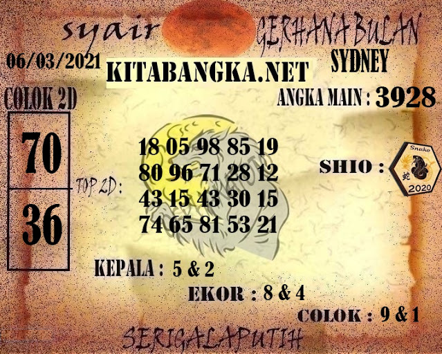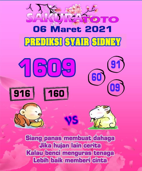 Oh ya, Selalu pergunakan naluri anda untuk membaca makna dari Prediksi Syair Sydney 06 Maret 2021. Janganlah membaca Prediksi Syair Sydney Terjitu dengan terlalu menggebu – gebu dari makna syair yang telah kami berikan. Pahamilah dengan pelan hingga mengerti maksud dari syair yang paling banyak dicari oleh pemain judi togel online ini. Setelah kalian memahami prediksi Syair Sydney ini Kemenangan dengan lebih mudah bisa kalian raih.