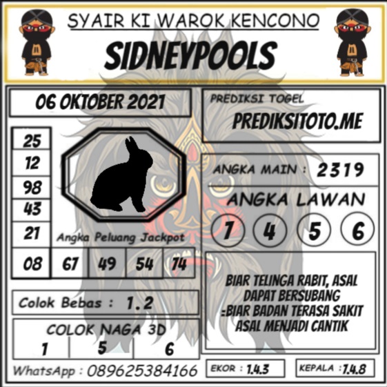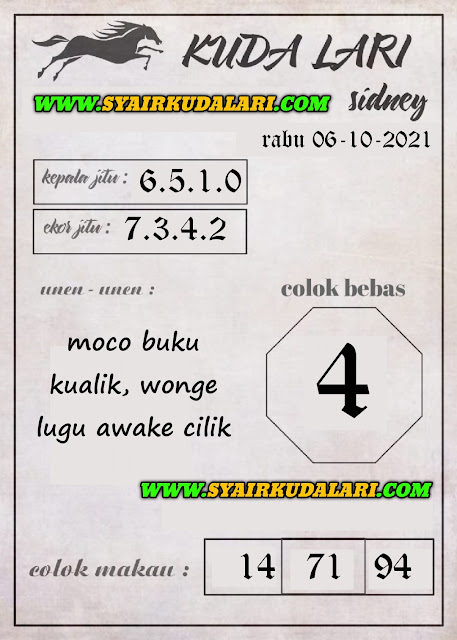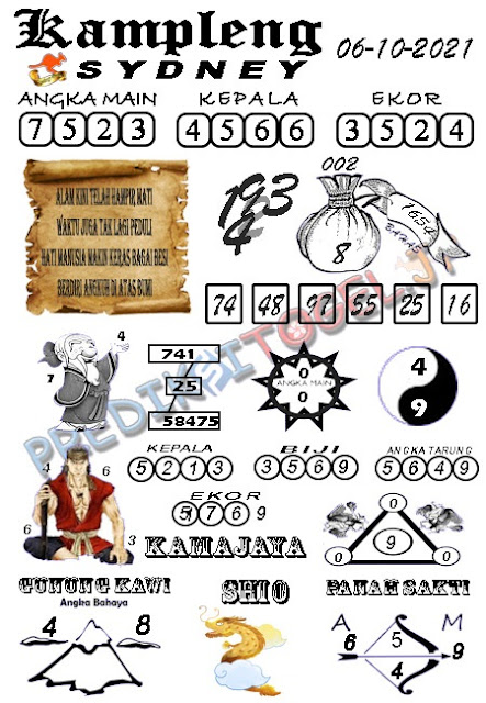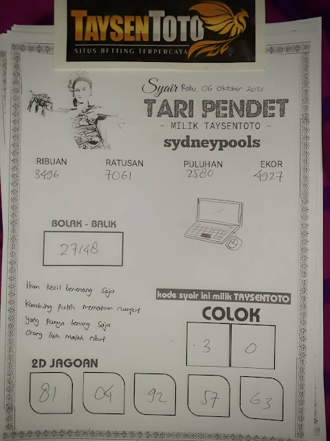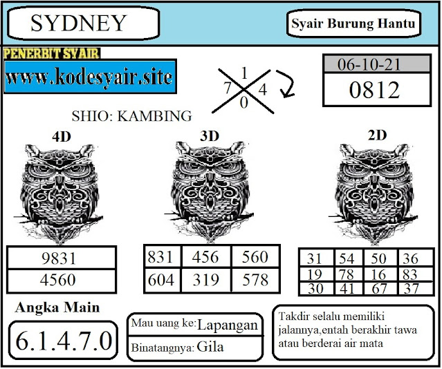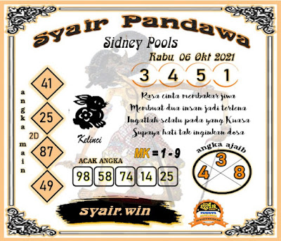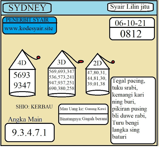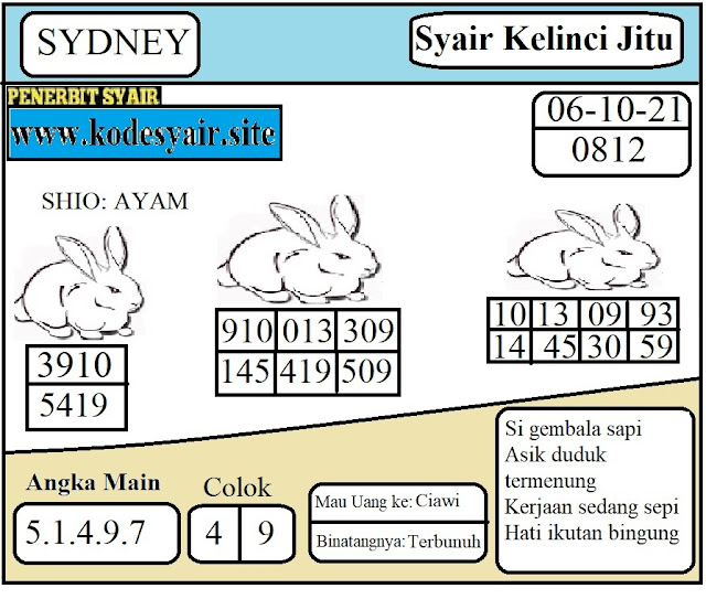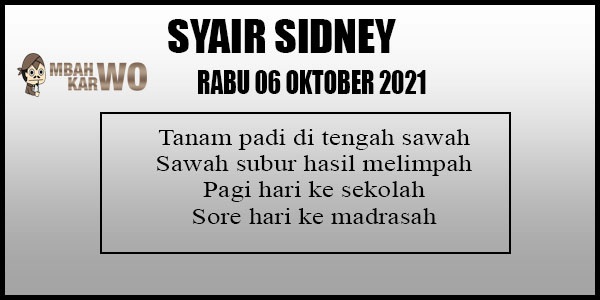 Oh ya, Selalu pergunakan naluri anda untuk membaca makna dari Prediksi Syair Sydney 06 Oktober 2021. Janganlah membaca Prediksi Syair Sydney Terjitu dengan terlalu menggebu – gebu dari makna syair yang telah kami berikan. Pahamilah dengan pelan hingga mengerti maksud dari syair yang paling banyak dicari oleh pemain judi togel online ini. Setelah kalian memahami prediksi Syair Sydney ini Kemenangan dengan lebih mudah bisa kalian raih.