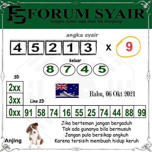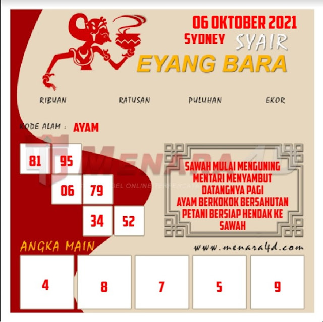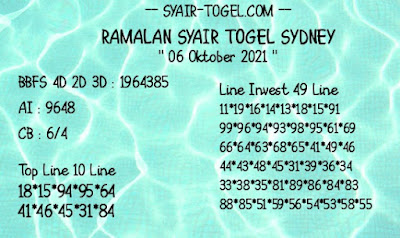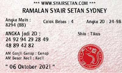 Jenis Permainan Togel Online ini sangat membutuhkan kesadaran dan kepekaan dalam membaca dan juga mamprediksi suatu angka togel. Terutama Syair 06 Oktober 2021, dalam forum syair sydney hari ini, kalian akan menemukan kode syair sydney hari ini, nah dalam prediksi togel sydney hari ini, kalian akan mendapatkan syair togel sydney terlengkap hanya di JON4D Sebagai Situs Judi Togel Online terbesar di Indoneisa. Dimana kami munculkan Syair Sydney terjitu agar memudahkan pemain dalam memahami angka keluaran di periode selanjutnya.