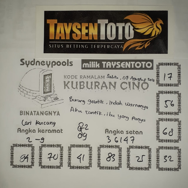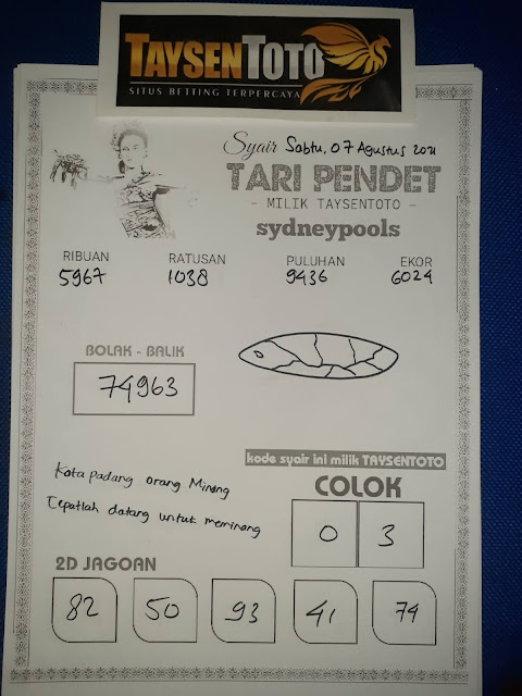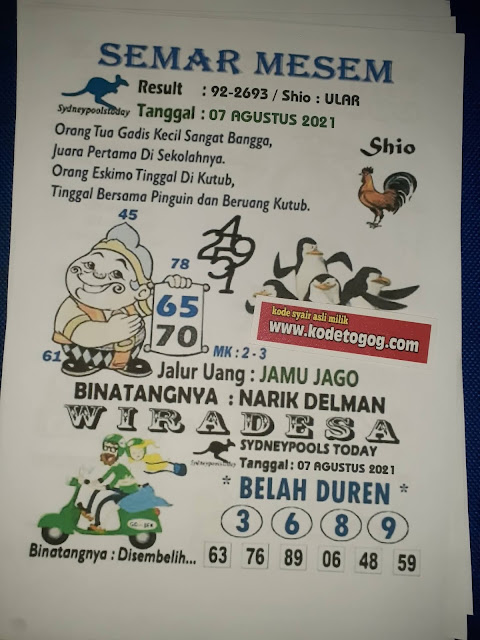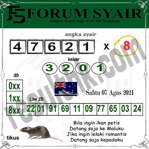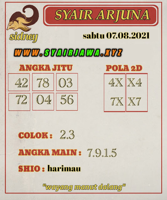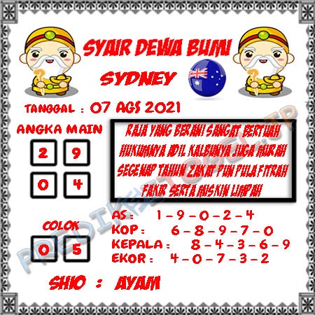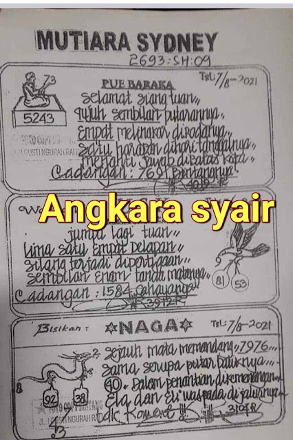 Jenis Permainan Togel Online ini sangat membutuhkan kesadaran dan kepekaan dalam membaca dan juga mamprediksi suatu angka togel. Terutama Syair 07 Agustus 2021, dalam forum syair sydney hari ini, kalian akan menemukan kode syair sydney hari ini, nah dalam prediksi togel sydney hari ini, kalian akan mendapatkan syair togel sydney terlengkap hanya di JON4D Sebagai Situs Judi Togel Online terbesar di Indoneisa. Dimana kami munculkan Syair Sydney terjitu agar memudahkan pemain dalam memahami angka keluaran di periode selanjutnya.
