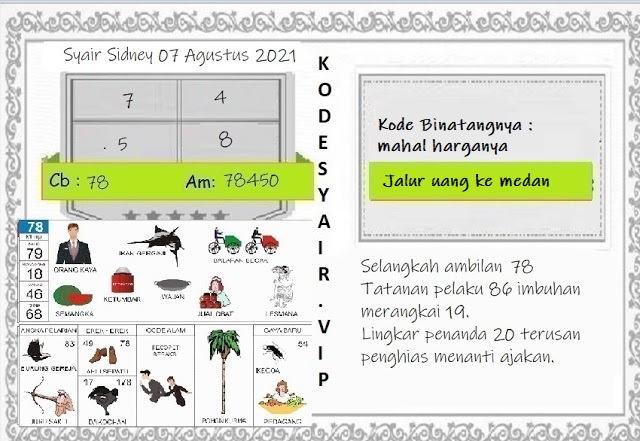 Oh ya, Selalu pergunakan naluri anda untuk membaca makna dari Prediksi Syair Sydney 07 Agustus 2021. Janganlah membaca Prediksi Syair Sydney Terjitu dengan terlalu menggebu – gebu dari makna syair yang telah kami berikan. Pahamilah dengan pelan hingga mengerti maksud dari syair yang paling banyak dicari oleh pemain judi togel online ini. Setelah kalian memahami prediksi Syair Sydney ini Kemenangan dengan lebih mudah bisa kalian raih.