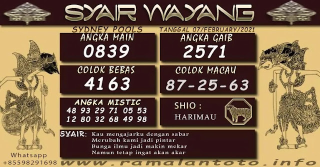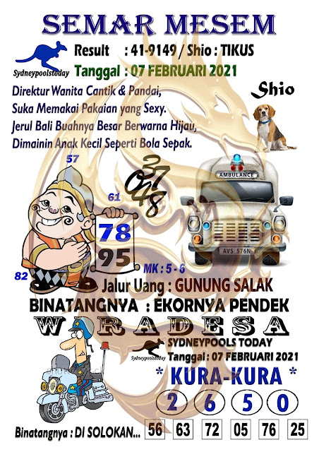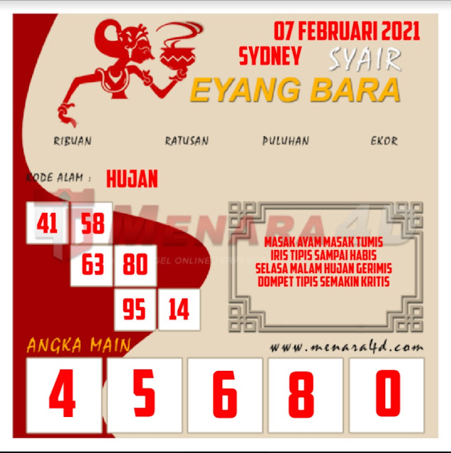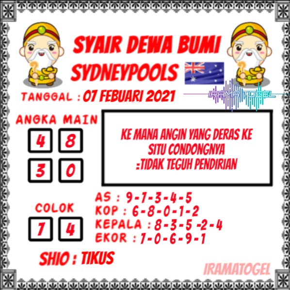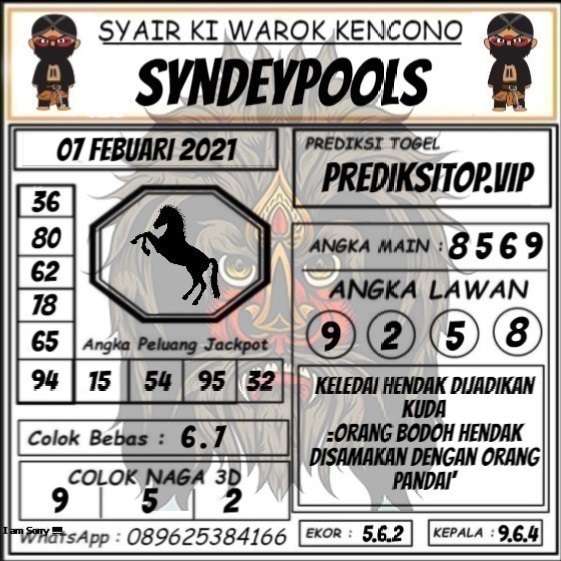 Jenis Permainan Togel Online ini sangat membutuhkan kesadaran dan kepekaan dalam membaca dan juga mamprediksi suatu angka togel. Terutama Syair 07 Februari 2021, dalam forum syair sydney hari ini, kalian akan menemukan kode syair sydney hari ini, nah dalam prediksi togel sdy hari ini, kalian akan mendapatkan syair togel sydney terlengkap hanya di JON4D Sebagai Situs Judi Togel Online terbesar di Indoneisa. Dimana kami munculkan Syair Sydney terjitu agar memudahkan pemain dalam memahami angka keluaran di periode selanjutnya.