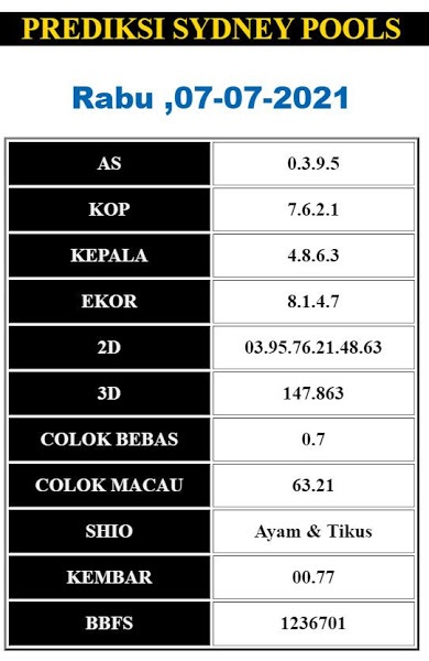 Jenis Permainan Togel Online ini sangat membutuhkan kesadaran dan kepekaan dalam membaca dan juga mamprediksi suatu angka togel. Terutama Syair 07 Juli 2021, dalam forum syair sydney hari ini, kalian akan menemukan kode syair sydney hari ini, nah dalam prediksi togel sydney hari ini, kalian akan mendapatkan syair togel sydney terlengkap hanya di JON4D Sebagai Situs Judi Togel Online terbesar di Indoneisa. Dimana kami munculkan Syair Sydney terjitu agar memudahkan pemain dalam memahami angka keluaran di periode selanjutnya.