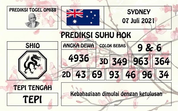 Oh ya, Selalu pergunakan naluri anda untuk membaca makna dari Prediksi Syair Sydney 07 Juli 2021. Janganlah membaca Prediksi Syair Sydney Terjitu dengan terlalu menggebu – gebu dari makna syair yang telah kami berikan. Pahamilah dengan pelan hingga mengerti maksud dari syair yang paling banyak dicari oleh pemain judi togel online ini. Setelah kalian memahami prediksi Syair Sydney ini Kemenangan dengan lebih mudah bisa kalian raih.