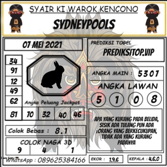 Oh ya, Selalu pergunakan naluri anda untuk membaca makna dari Prediksi Syair Sydney 07 Mei 2021. Janganlah membaca Prediksi Syair Sydney Terjitu dengan terlalu menggebu – gebu dari makna syair yang telah kami berikan. Pahamilah dengan pelan hingga mengerti maksud dari syair yang paling banyak dicari oleh pemain judi togel online ini. Setelah kalian memahami prediksi Syair Sydney ini Kemenangan dengan lebih mudah bisa kalian raih.