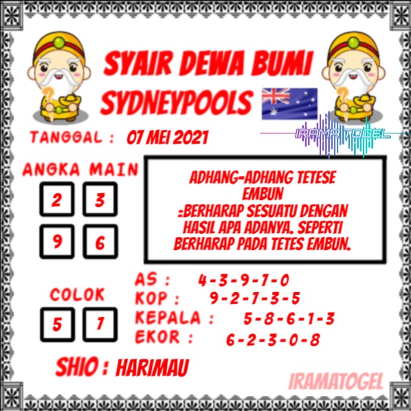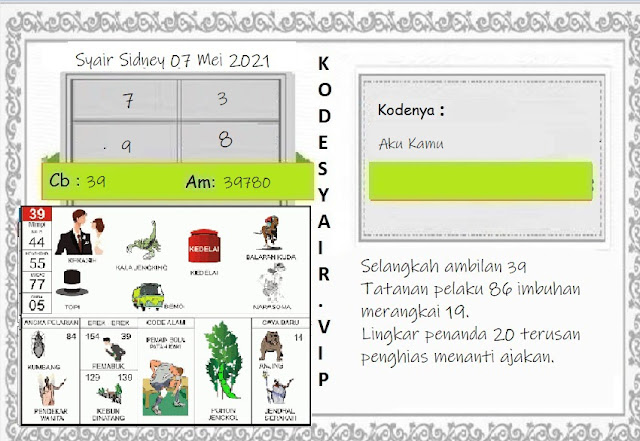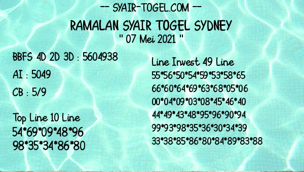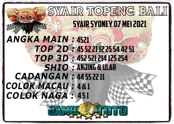 Jenis Permainan Togel Online ini sangat membutuhkan kesadaran dan kepekaan dalam membaca dan juga mamprediksi suatu angka togel. Terutama Syair 07 Mei 2021, dalam forum syair sydney hari ini, kalian akan menemukan kode syair sydney hari ini, nah dalam prediksi togel sydney hari ini, kalian akan mendapatkan syair togel sydney terlengkap hanya di JON4D Sebagai Situs Judi Togel Online terbesar di Indoneisa. Dimana kami munculkan Syair Sydney terjitu agar memudahkan pemain dalam memahami angka keluaran di periode selanjutnya.