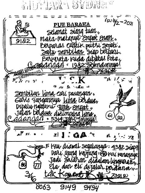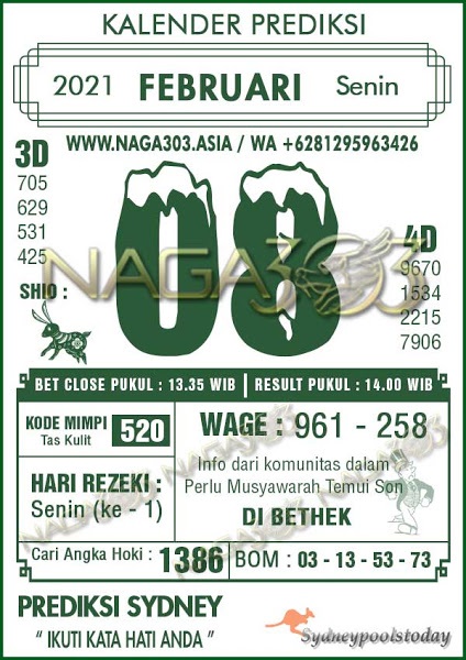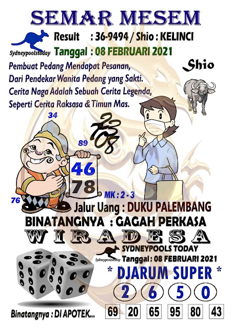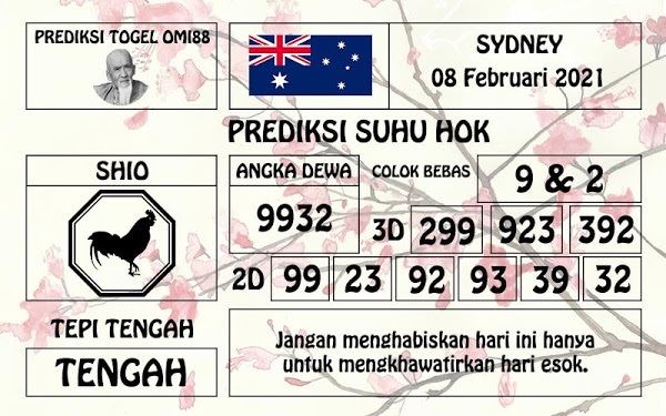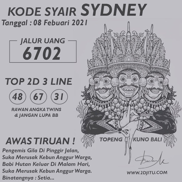 Jenis Permainan Togel Online ini sangat membutuhkan kesadaran dan kepekaan dalam membaca dan juga mamprediksi suatu angka togel. Terutama Syair 08 Februari 2021, dalam forum syair sydney hari ini, kalian akan menemukan kode syair sydney hari ini, nah dalam prediksi togel sydney hari ini, kalian akan mendapatkan syair togel sydney terlengkap hanya di JON4D Sebagai Situs Judi Togel Online terbesar di Indoneisa. Dimana kami munculkan Syair Sydney terjitu agar memudahkan pemain dalam memahami angka keluaran di periode selanjutnya.