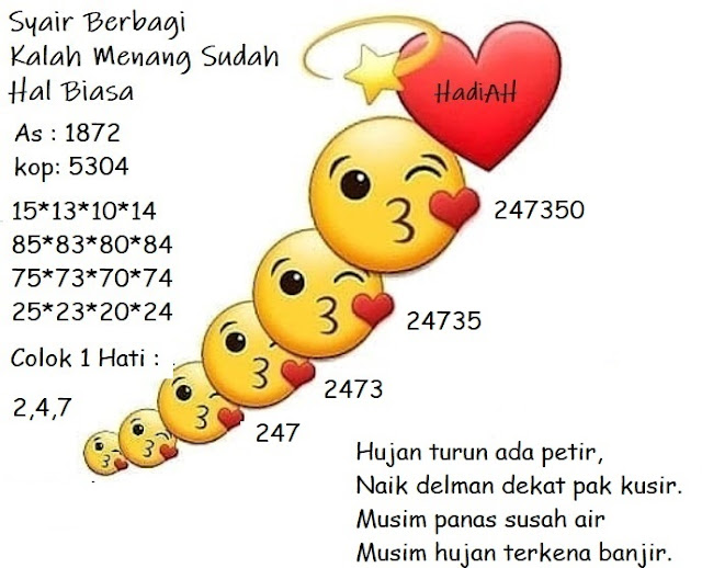 Daftar togel online terpercaya di JON4D untuk mendapatkan sebuah kode syair togel terjitu setiap harinya. Pastikan saja Anda tidak akan pernah melewatkan semua syair yang kami berikan ini. Syair Togel Sydney ini adalah yang paling banyak dicari oleh para pemain togel. Untuk itu tidak salah lagi jika anda sebagai Pemain togel online harus mengikuti secara terus menerus semua syair yang kami terbitkan di prediksi ini.
