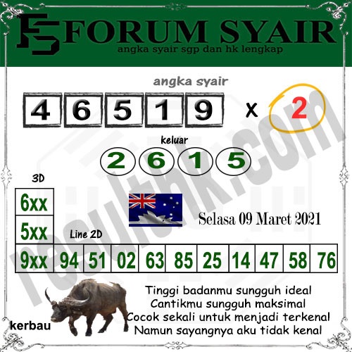 Oh ya, Selalu pergunakan naluri anda untuk membaca makna dari Prediksi Syair Sydney 09 Maret 2021. Janganlah membaca Prediksi Syair Sydney Terjitu dengan terlalu menggebu – gebu dari makna syair yang telah kami berikan. Pahamilah dengan pelan hingga mengerti maksud dari syair yang paling banyak dicari oleh pemain judi togel online ini. Setelah kalian memahami prediksi Syair Sydney ini Kemenangan dengan lebih mudah bisa kalian raih.