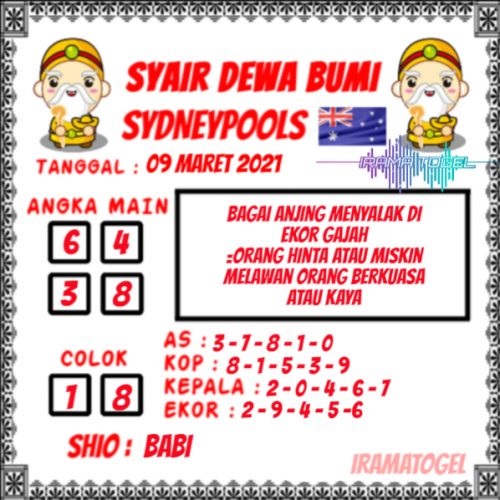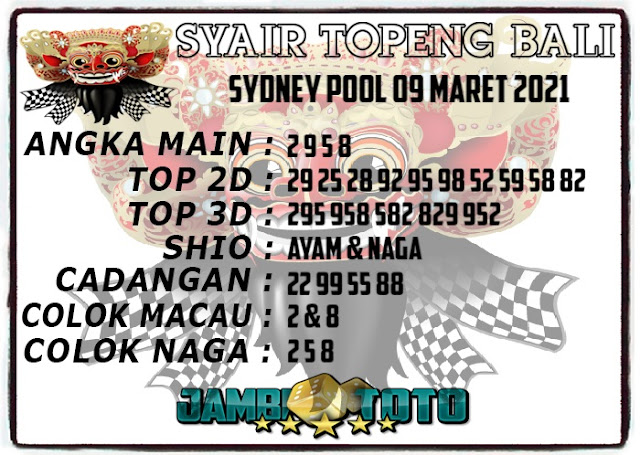 Jenis Permainan Togel Online ini sangat membutuhkan kesadaran dan kepekaan dalam membaca dan juga mamprediksi suatu angka togel. Terutama Syair 09 Maret 2021, dalam forum syair sydney hari ini, kalian akan menemukan kode syair sydney hari ini, nah dalam prediksi togel sydney hari ini, kalian akan mendapatkan syair togel sydney terlengkap hanya di JON4D Sebagai Situs Judi Togel Online terbesar di Indoneisa. Dimana kami munculkan Syair Sydney terjitu agar memudahkan pemain dalam memahami angka keluaran di periode selanjutnya.