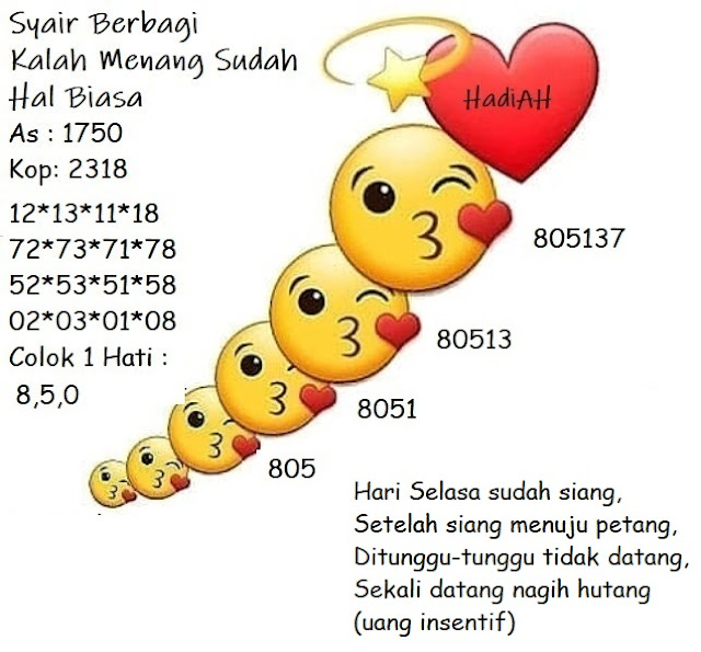 Daftar togel online terpercaya di JON4D untuk mendapatkan sebuah kode syair togel terjitu setiap harinya. Pastikan saja Anda tidak akan pernah melewatkan semua syair yang kami berikan ini. Syair Togel Sydney ini adalah yang paling banyak dicari oleh para pemain togel. Untuk itu tidak salah lagi jika anda sebagai Pemain togel online harus mengikuti secara terus menerus semua syair yang kami terbitkan di prediksi ini.