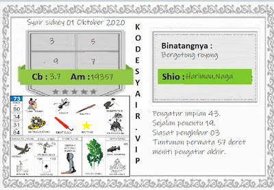 Oh ya, Selalu pergunakan naluri anda untuk membaca makna dari Prediksi Syair Sydney 1 October 2020. Janganlah membaca Prediksi Syair Sydney Terjitu dengan terlalu menggebu – gebu dari makna syair yang telah kami berikan. Pahamilah dengan pelan hingga mengerti maksud dari syair yang paling banyak dicari oleh pemain judi togel online ini. Setelah kalian memahami prediksi Syair Sydney ini Kemenangan dengan lebih mudah bisa kalian raih.