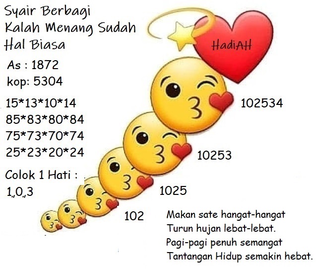 Oh ya, Selalu pergunakan naluri anda untuk membaca makna dari Prediksi Syair Sydney 10 Februari 2021. Janganlah membaca Prediksi Syair Sydney Terjitu dengan terlalu menggebu – gebu dari makna syair yang telah kami berikan. Pahamilah dengan pelan hingga mengerti maksud dari syair yang paling banyak dicari oleh pemain judi togel online ini. Setelah kalian memahami prediksi Syair Sydney ini Kemenangan dengan lebih mudah bisa kalian raih.