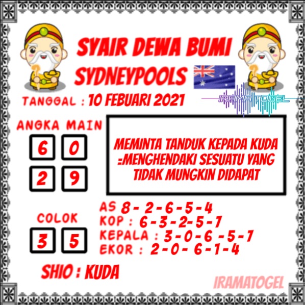 Jenis Permainan Togel Online ini sangat membutuhkan kesadaran dan kepekaan dalam membaca dan juga mamprediksi suatu angka togel. Terutama Syair 10 Februari 2021, dalam forum syair sydney hari ini, kalian akan menemukan kode syair sydney hari ini, nah dalam prediksi togel sydney hari ini, kalian akan mendapatkan syair togel sydney terlengkap hanya di JON4D Sebagai Situs Judi Togel Online terbesar di Indoneisa. Dimana kami munculkan Syair Sydney terjitu agar memudahkan pemain dalam memahami angka keluaran di periode selanjutnya.