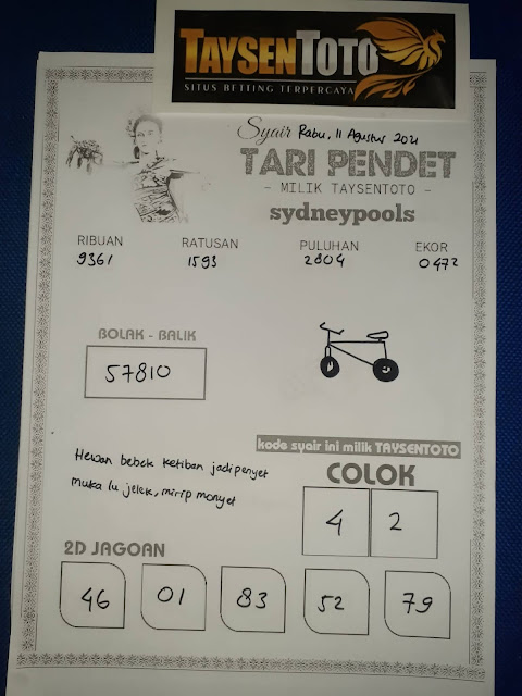 Daftar togel online terpercaya di JON4D untuk mendapatkan sebuah kode syair togel terjitu setiap harinya. Pastikan saja Anda tidak akan pernah melewatkan semua syair yang kami berikan ini. Syair Togel Sydney ini adalah yang paling banyak dicari oleh para pemain togel. Untuk itu tidak salah lagi jika anda sebagai Pemain togel online harus mengikuti secara terus menerus semua syair yang kami terbitkan di prediksi ini.