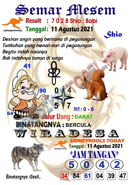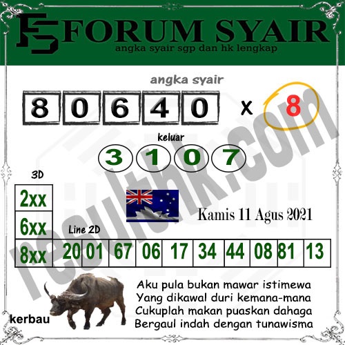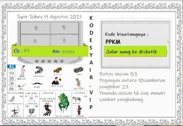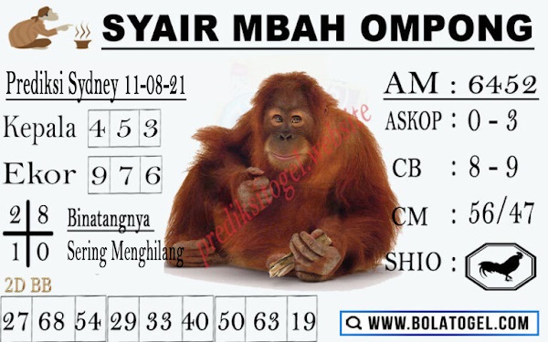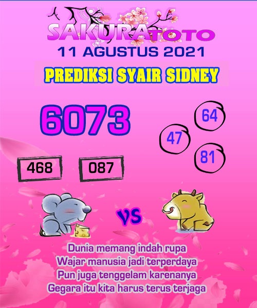 Jenis Permainan Togel Online ini sangat membutuhkan kesadaran dan kepekaan dalam membaca dan juga mamprediksi suatu angka togel. Terutama Syair 11 Agustus 2021, dalam forum syair sydney hari ini, kalian akan menemukan kode syair sydney hari ini, nah dalam prediksi togel sydney hari ini, kalian akan mendapatkan syair togel sydney terlengkap hanya di JON4D Sebagai Situs Judi Togel Online terbesar di Indoneisa. Dimana kami munculkan Syair Sydney terjitu agar memudahkan pemain dalam memahami angka keluaran di periode selanjutnya.