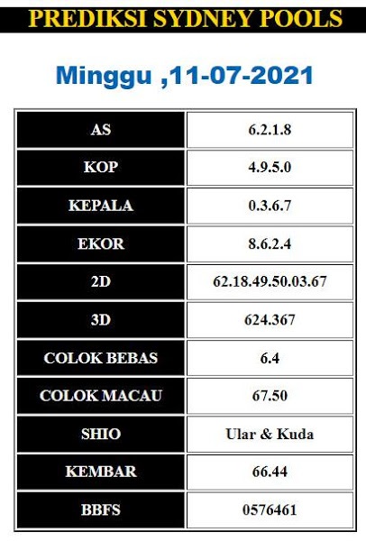 Jenis Permainan Togel Online ini sangat membutuhkan kesadaran dan kepekaan dalam membaca dan juga mamprediksi suatu angka togel. Terutama Syair 11 Juli 2021, dalam forum syair sydney hari ini, kalian akan menemukan kode syair sydney hari ini, nah dalam prediksi togel sydney hari ini, kalian akan mendapatkan syair togel sydney terlengkap hanya di JON4D Sebagai Situs Judi Togel Online terbesar di Indoneisa. Dimana kami munculkan Syair Sydney terjitu agar memudahkan pemain dalam memahami angka keluaran di periode selanjutnya.
