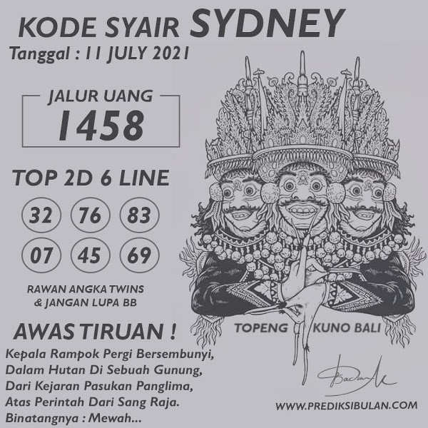 Oh ya, Selalu pergunakan naluri anda untuk membaca makna dari Prediksi Syair Sydney 11 Juli 2021. Janganlah membaca Prediksi Syair Sydney Terjitu dengan terlalu menggebu – gebu dari makna syair yang telah kami berikan. Pahamilah dengan pelan hingga mengerti maksud dari syair yang paling banyak dicari oleh pemain judi togel online ini. Setelah kalian memahami prediksi Syair Sydney ini Kemenangan dengan lebih mudah bisa kalian raih.