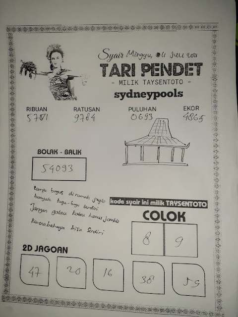 Daftar togel online terpercaya di JON4D untuk mendapatkan sebuah kode syair togel terjitu setiap harinya. Pastikan saja Anda tidak akan pernah melewatkan semua syair yang kami berikan ini. Syair Togel Sydney ini adalah yang paling banyak dicari oleh para pemain togel. Untuk itu tidak salah lagi jika anda sebagai Pemain togel online harus mengikuti secara terus menerus semua syair yang kami terbitkan di prediksi ini.