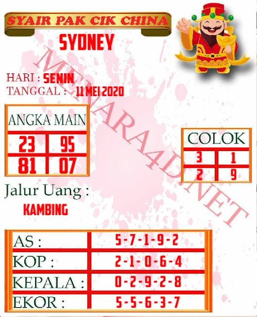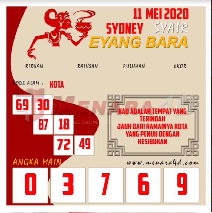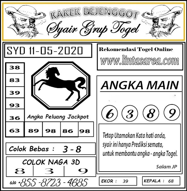 Jenis Permainan Togel Online ini sangat membutuhkan kesadaran dan kepekaan dalam membaca dan juga mamprediksi suatu angka togel. Terutama Syair Sydney 11 Mei 2020, dalam forum syair sydney hari ini, kalian akan menemukan kode syair sydney hari ini, nah dalam prediksi togel sydney hari ini, kalian akan mendapatkan syair togel sydney terlengkap hanya di JON4D Sebagai Situs Judi Togel Online terbesar di Indoneisa. Dimana kami munculkan Syair Sydney terjitu agar memudahkan pemain dalam memahami angka keluaran di periode selanjutnya.