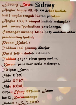 Oh ya, Selalu pergunakan naluri anda untuk membaca makna dari Prediksi Syair Sydney 12 Juli 2020. Janganlah membaca Prediksi Syair Sydney Terjitu dengan terlalu menggebu – gebu dari makna syair yang telah kami berikan. Pahamilah dengan pelan hingga mengerti maksud dari syair yang paling banyak dicari oleh pemain judi togel online ini. Setelah kalian memahami prediksi Syair Sydney ini Kemenangan dengan lebih mudah bisa kalian raih.