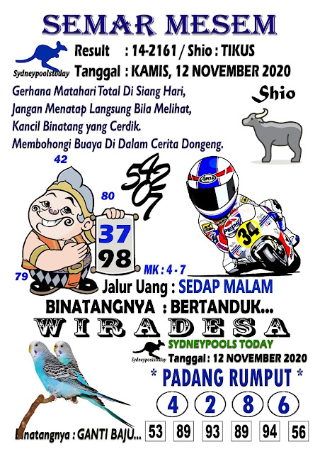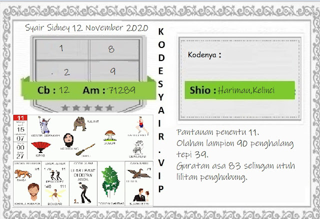 Oh ya, Selalu pergunakan naluri anda untuk membaca makna dari Prediksi Syair Sydney 12 November 2020. Janganlah membaca Prediksi Syair Sydney Terjitu dengan terlalu menggebu – gebu dari makna syair yang telah kami berikan. Pahamilah dengan pelan hingga mengerti maksud dari syair yang paling banyak dicari oleh pemain judi togel online ini. Setelah kalian memahami prediksi Syair Sydney ini Kemenangan dengan lebih mudah bisa kalian raih.