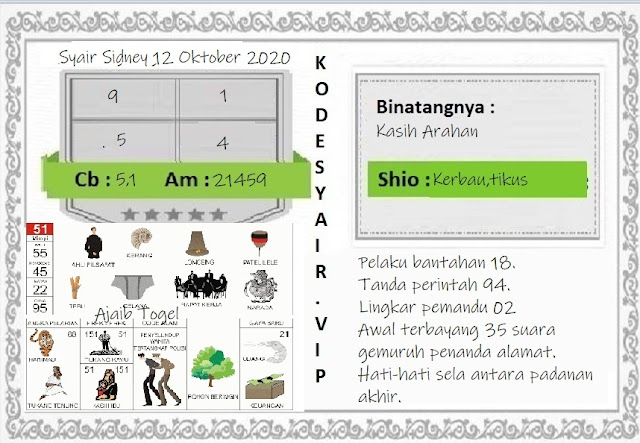 Jenis Permainan Togel Online ini sangat membutuhkan kesadaran dan kepekaan dalam membaca dan juga mamprediksi suatu angka togel. Terutama Syair 12 October 2020, dalam forum syair sydney hari ini, kalian akan menemukan kode syair sydney hari ini, nah dalam prediksi togel sydney hari ini, kalian akan mendapatkan syair togel sydney terlengkap hanya di JON4D Sebagai Situs Judi Togel Online terbesar di Indoneisa. Dimana kami munculkan Syair Sydney terjitu agar memudahkan pemain dalam memahami angka keluaran di periode selanjutnya.