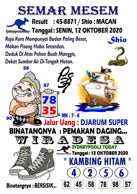 Oh ya, Selalu pergunakan naluri anda untuk membaca makna dari Prediksi Syair Sydney 12 October 2020. Janganlah membaca Prediksi Syair Sydney Terjitu dengan terlalu menggebu – gebu dari makna syair yang telah kami berikan. Pahamilah dengan pelan hingga mengerti maksud dari syair yang paling banyak dicari oleh pemain judi togel online ini. Setelah kalian memahami prediksi Syair Sydney ini Kemenangan dengan lebih mudah bisa kalian raih.