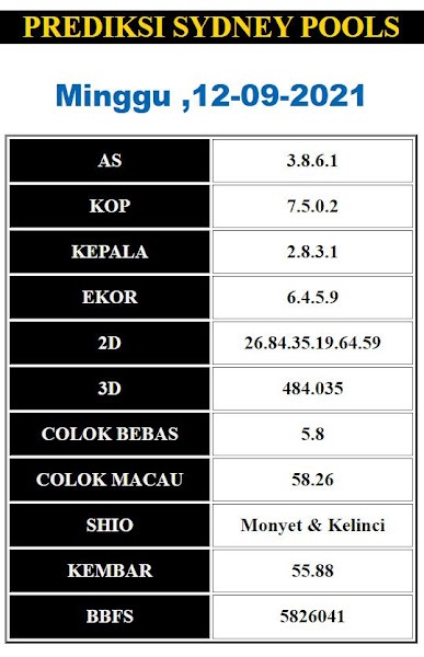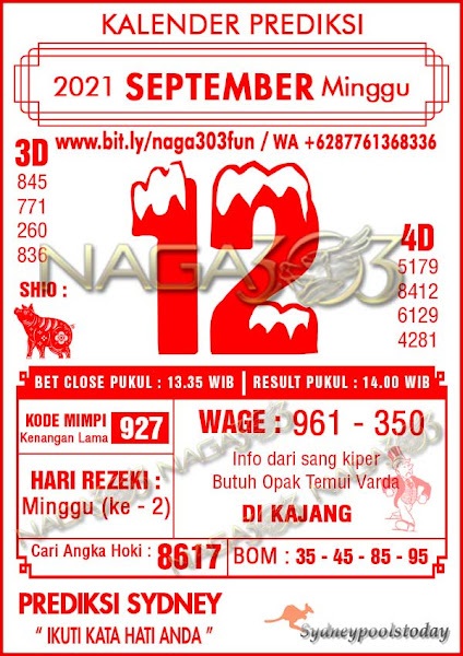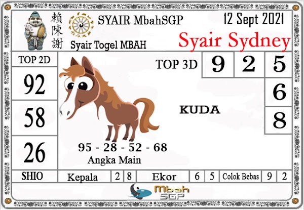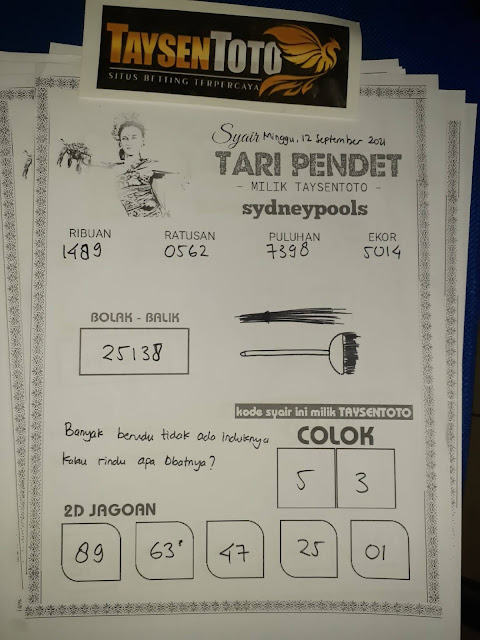 Jenis Permainan Togel Online ini sangat membutuhkan kesadaran dan kepekaan dalam membaca dan juga mamprediksi suatu angka togel. Terutama Syair 12 September 2021, dalam forum syair sydney hari ini, kalian akan menemukan kode syair sydney hari ini, nah dalam prediksi togel sydney hari ini, kalian akan mendapatkan syair togel sydney terlengkap hanya di JON4D Sebagai Situs Judi Togel Online terbesar di Indoneisa. Dimana kami munculkan Syair Sydney terjitu agar memudahkan pemain dalam memahami angka keluaran di periode selanjutnya.