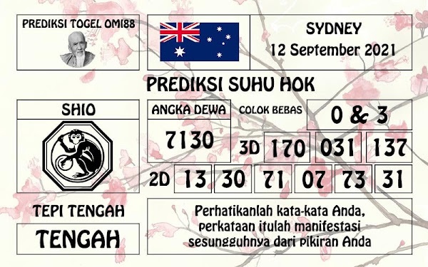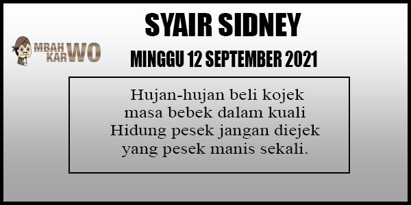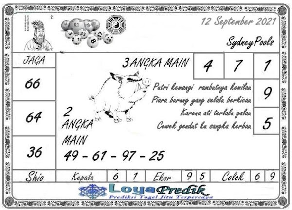 Oh ya, Selalu pergunakan naluri anda untuk membaca makna dari Prediksi Syair Sydney 12 September 2021. Janganlah membaca Prediksi Syair Sydney Terjitu dengan terlalu menggebu – gebu dari makna syair yang telah kami berikan. Pahamilah dengan pelan hingga mengerti maksud dari syair yang paling banyak dicari oleh pemain judi togel online ini. Setelah kalian memahami prediksi Syair Sydney ini Kemenangan dengan lebih mudah bisa kalian raih.
