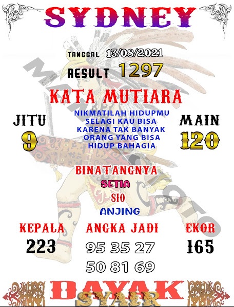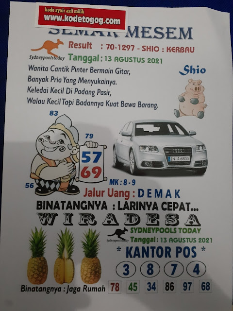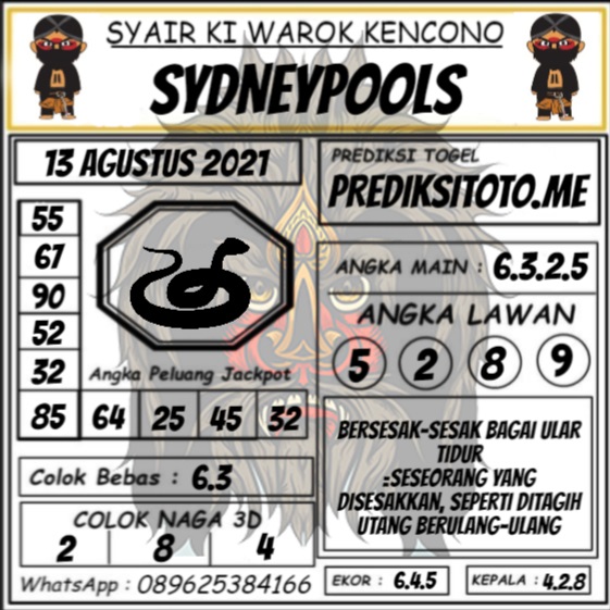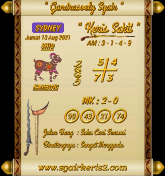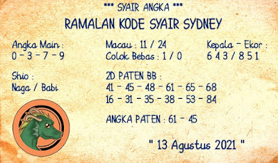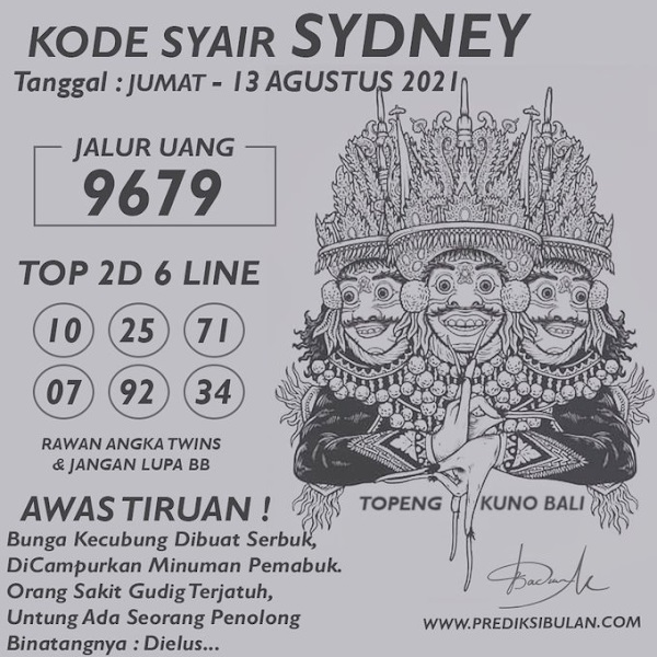 Oh ya, Selalu pergunakan naluri anda untuk membaca makna dari Prediksi Syair Sydney 13 Agustus 2021. Janganlah membaca Prediksi Syair Sydney Terjitu dengan terlalu menggebu – gebu dari makna syair yang telah kami berikan. Pahamilah dengan pelan hingga mengerti maksud dari syair yang paling banyak dicari oleh pemain judi togel online ini. Setelah kalian memahami prediksi Syair Sydney ini Kemenangan dengan lebih mudah bisa kalian raih.