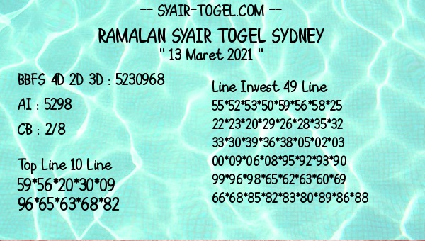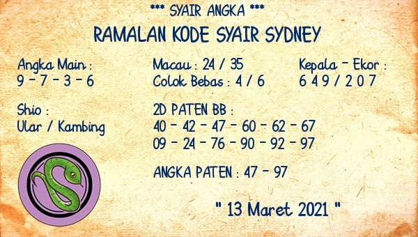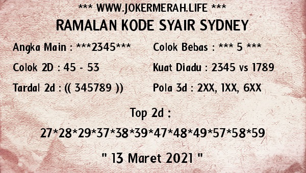 Jenis Permainan Togel Online ini sangat membutuhkan kesadaran dan kepekaan dalam membaca dan juga mamprediksi suatu angka togel. Terutama Syair 13 Maret 2021, dalam forum syair sydney hari ini, kalian akan menemukan kode syair sydney hari ini, nah dalam prediksi togel sydney hari ini, kalian akan mendapatkan syair togel sydney terlengkap hanya di JON4D Sebagai Situs Judi Togel Online terbesar di Indoneisa. Dimana kami munculkan Syair Sydney terjitu agar memudahkan pemain dalam memahami angka keluaran di periode selanjutnya.