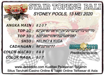 Jenis Permainan Togel Online ini sangat membutuhkan kesadaran dan kepekaan dalam membaca dan juga mamprediksi suatu angka togel. Terutama Syair Sydney 13 Mei 2020, dalam forum syair sydney hari ini, kalian akan menemukan kode syair sydney hari ini, nah dalam prediksi togel sydney hari ini, kalian akan mendapatkan syair togel sydney terlengkap hanya di JON4D Sebagai Situs Judi Togel Online terbesar di Indoneisa. Dimana kami munculkan Syair Sydney terjitu agar memudahkan pemain dalam memahami angka keluaran di periode selanjutnya.