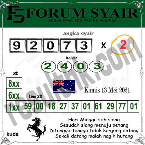 Jenis Permainan Togel Online ini sangat membutuhkan kesadaran dan kepekaan dalam membaca dan juga mamprediksi suatu angka togel. Terutama Syair 13 Mei 2021, dalam forum syair sydney hari ini, kalian akan menemukan kode syair sydney hari ini, nah dalam prediksi togel sydney hari ini, kalian akan mendapatkan syair togel sydney terlengkap hanya di JON4D Sebagai Situs Judi Togel Online terbesar di Indoneisa. Dimana kami munculkan Syair Sydney terjitu agar memudahkan pemain dalam memahami angka keluaran di periode selanjutnya.